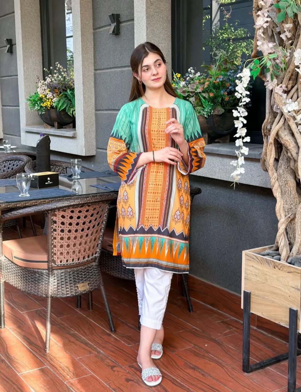 Printed ready to wear lawn shirt, elegant stitching and a very much affordable price.