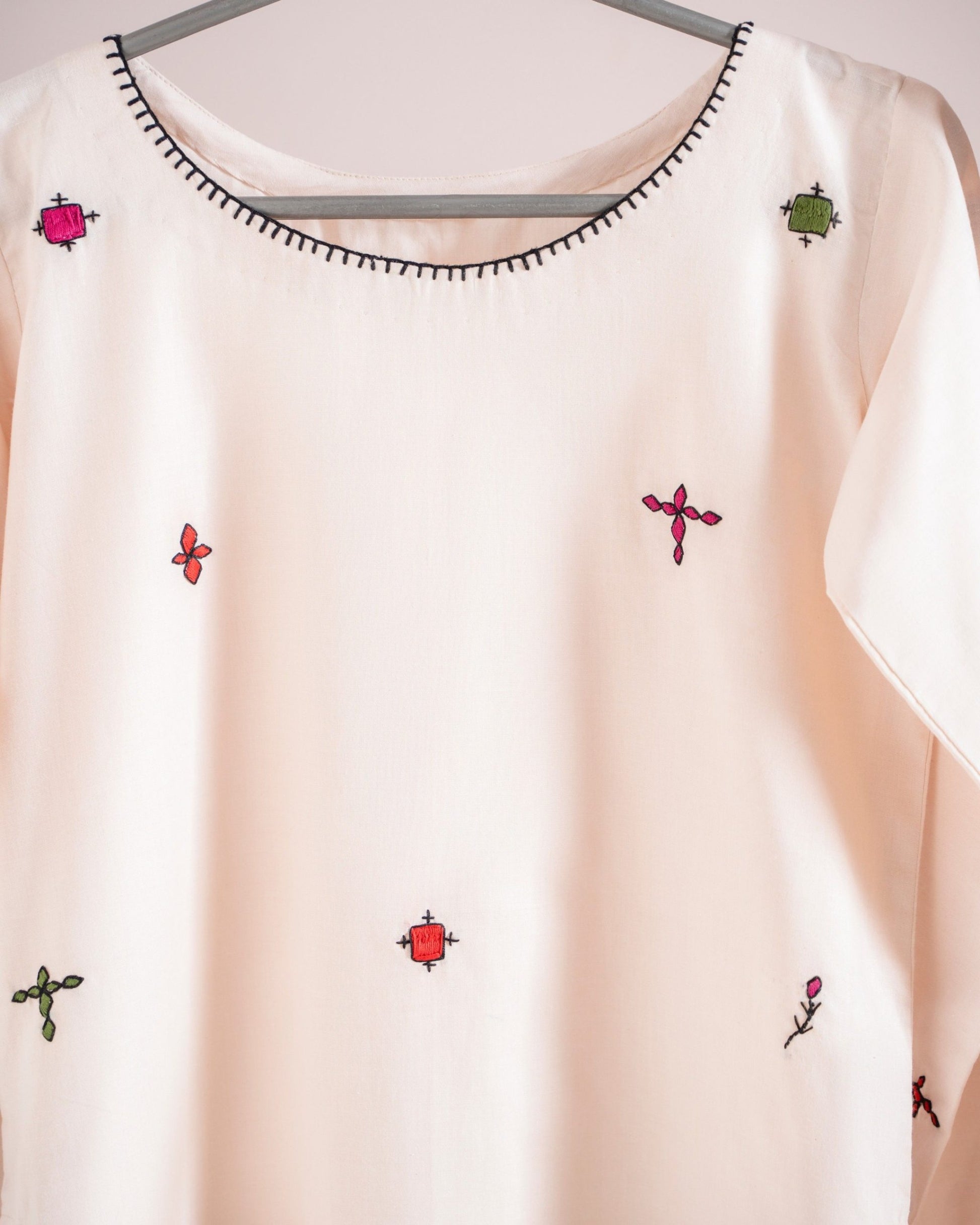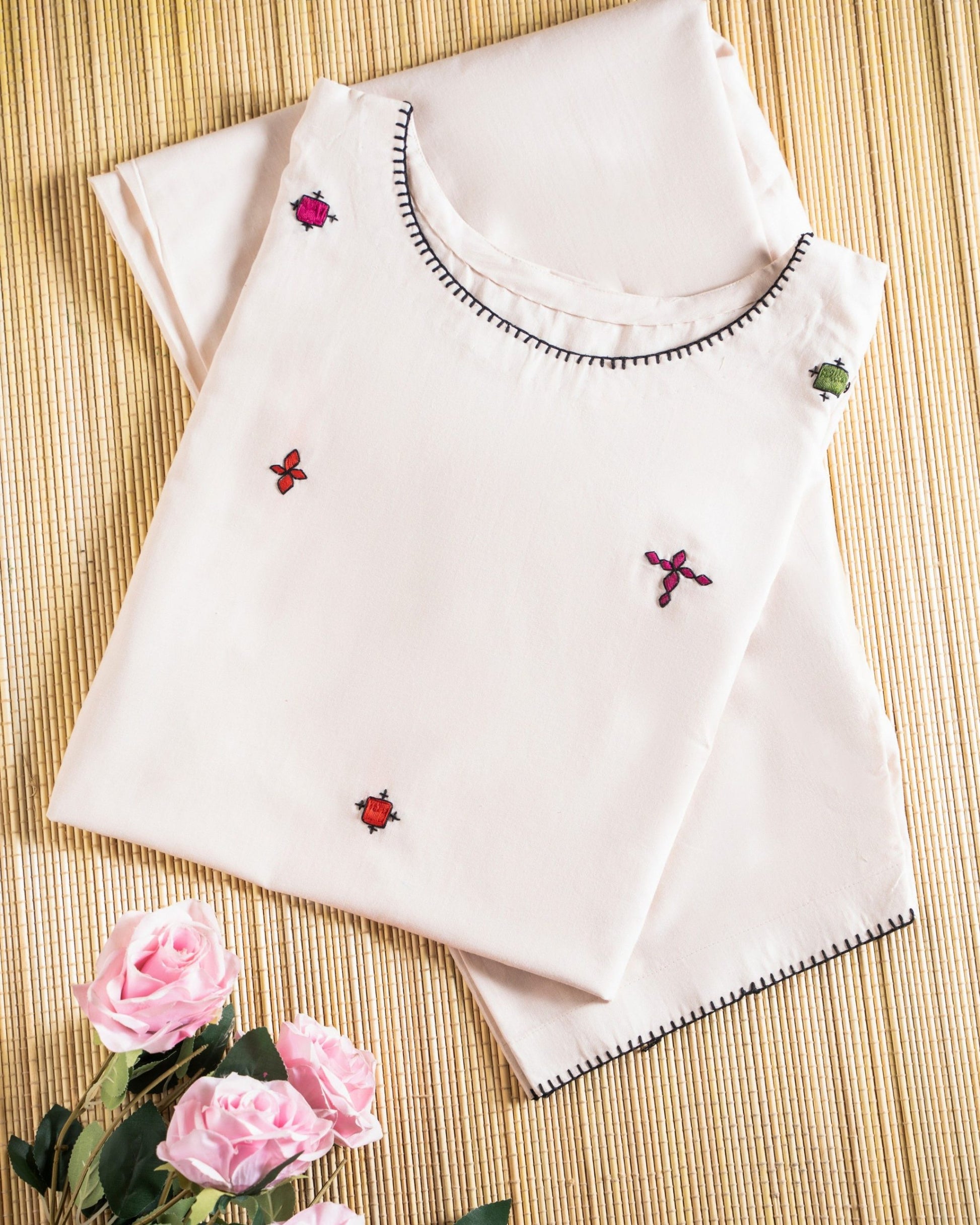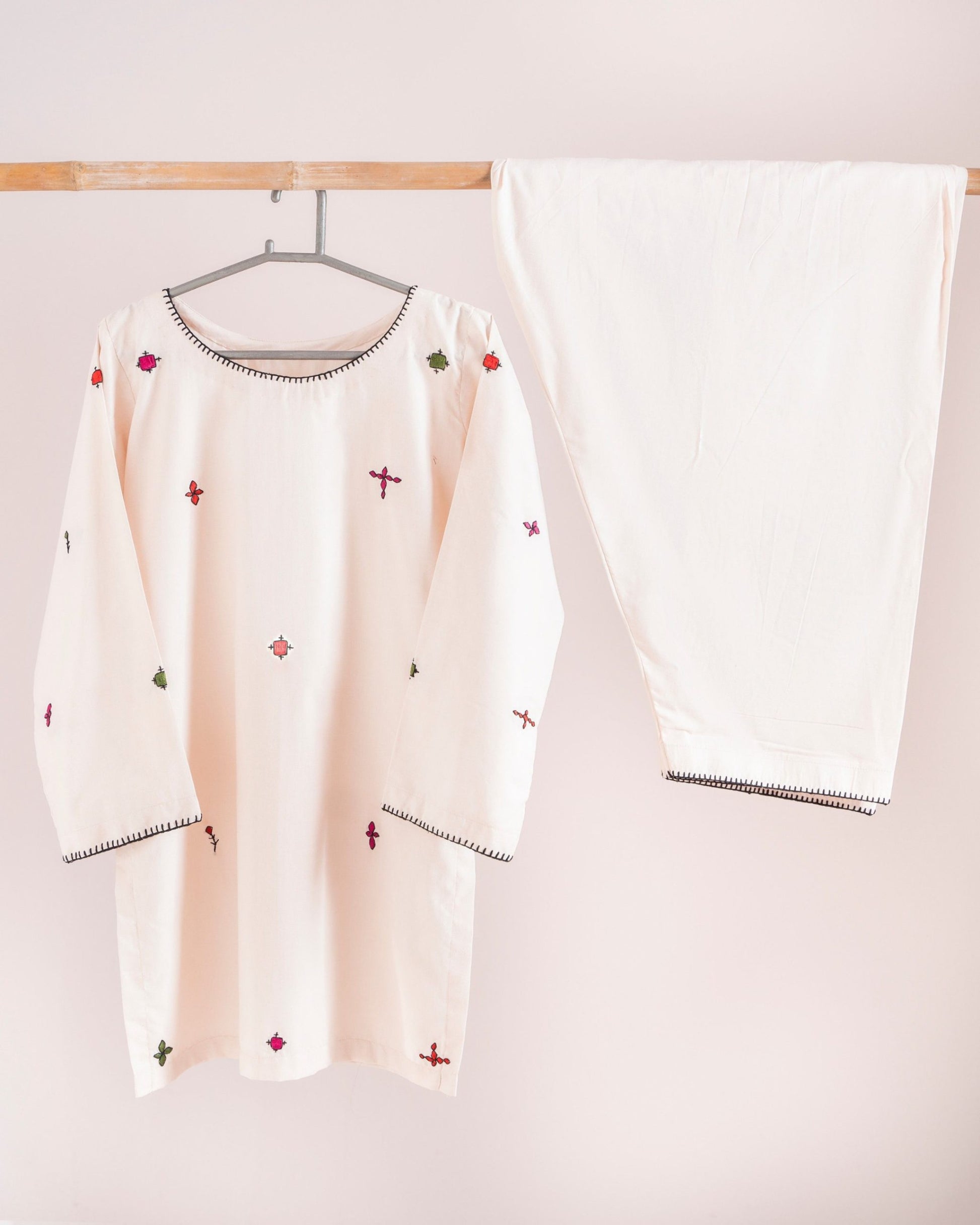 2-Piece Hand-Embroidered Cotton Set | Almond