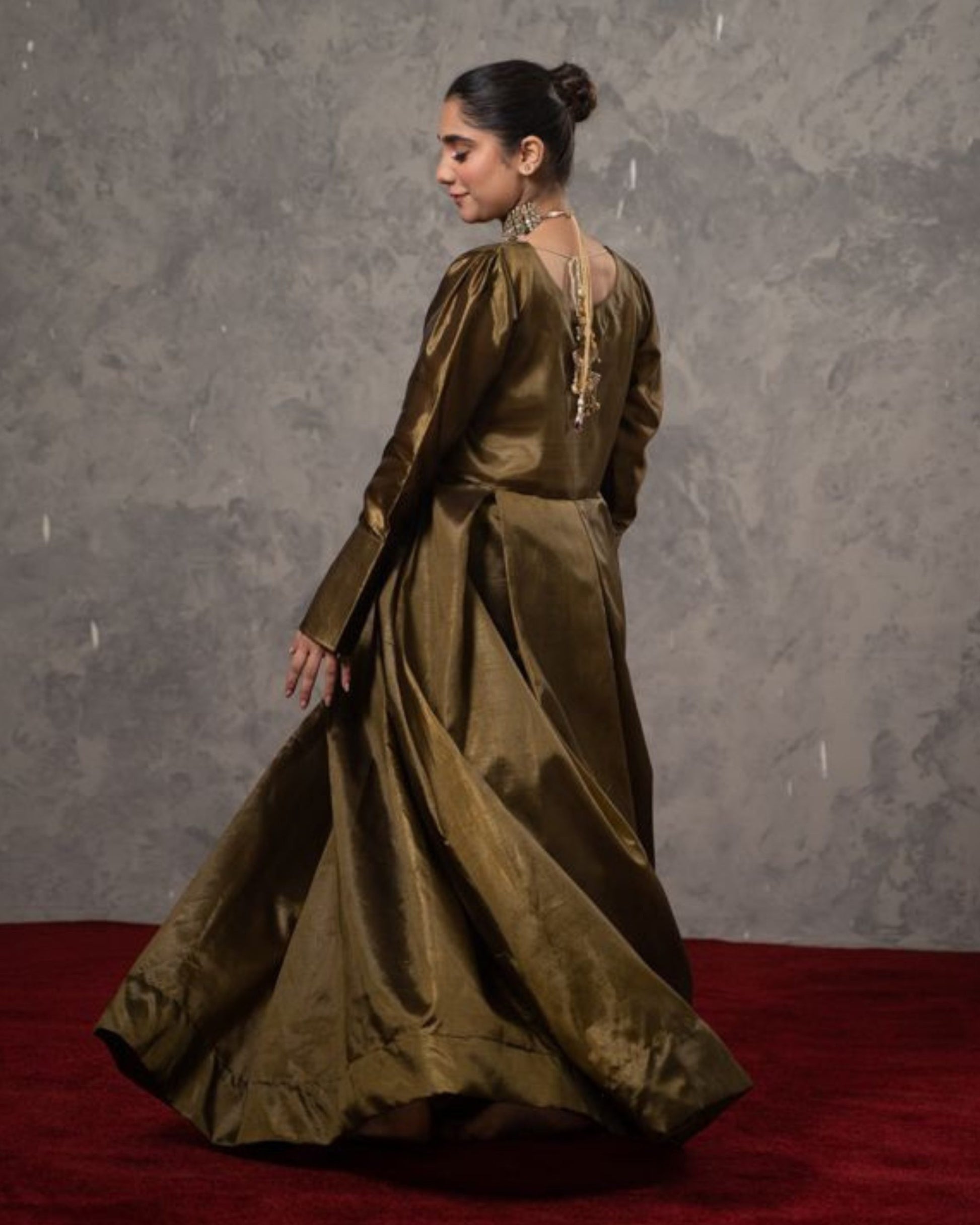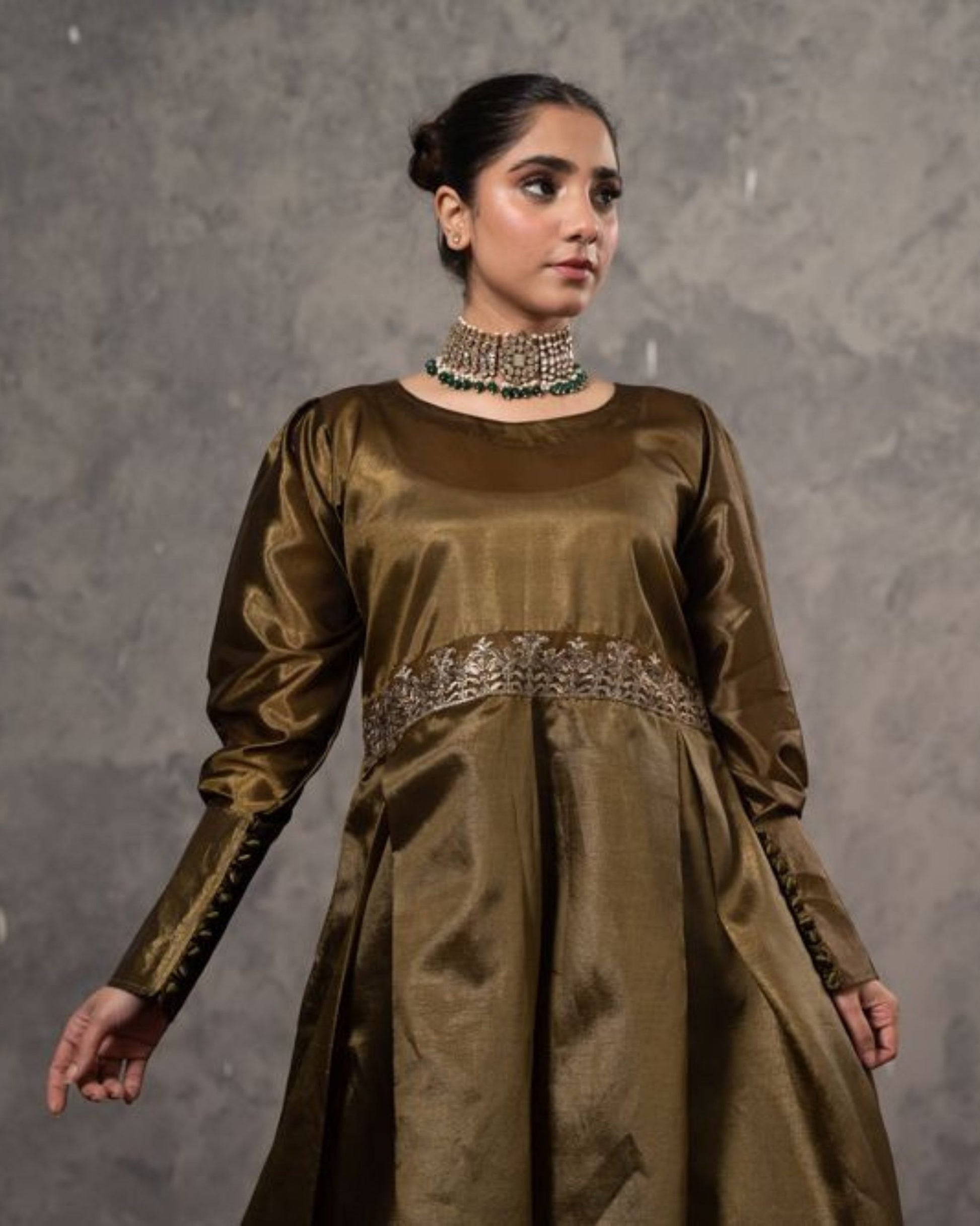 - The warm olive-green shade paired with minimalist detailing makes it perfect for festive occasions, weddings, or formal gatherings.